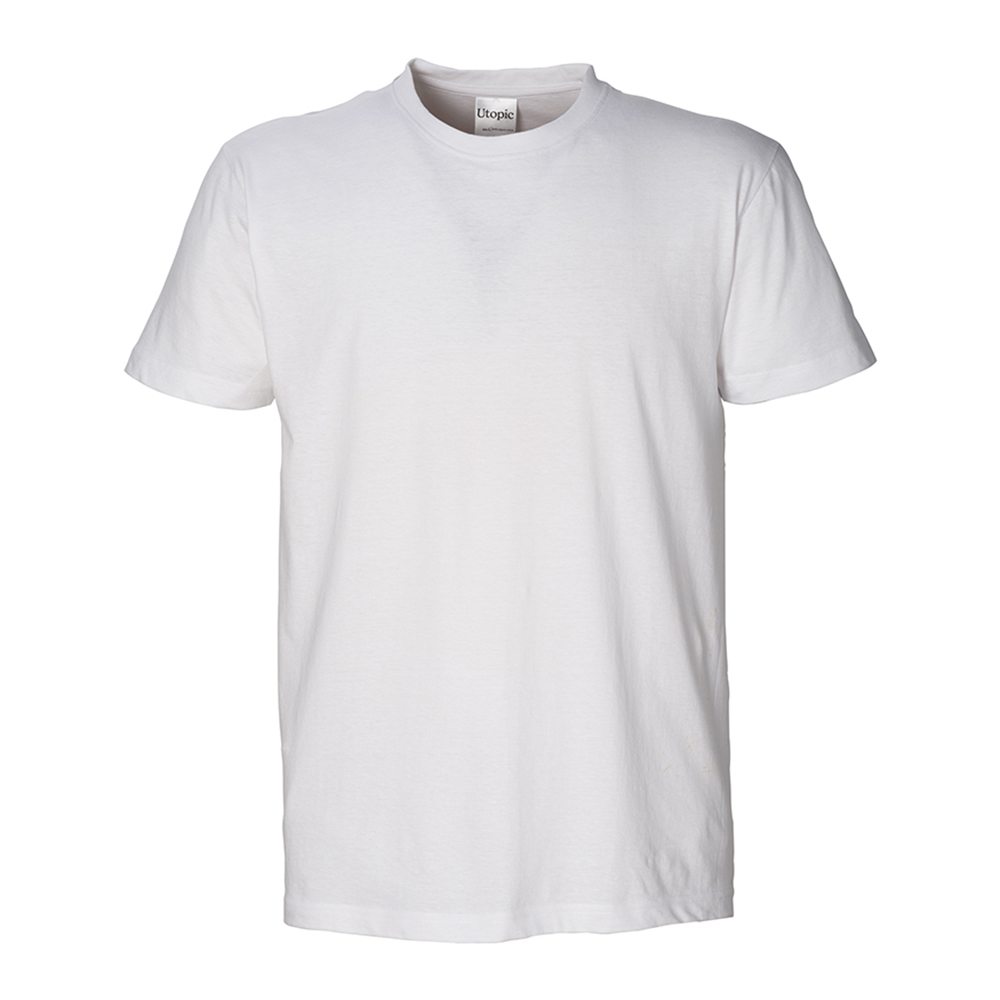 100% cotone biologico ring-spun single jersey. T-shirt tubolare (senza cuciture laterali) unisex manica corta, colletto doppio strato a costine con cuciture doppie, nastro di rinforzo al collo, 145 g/m2